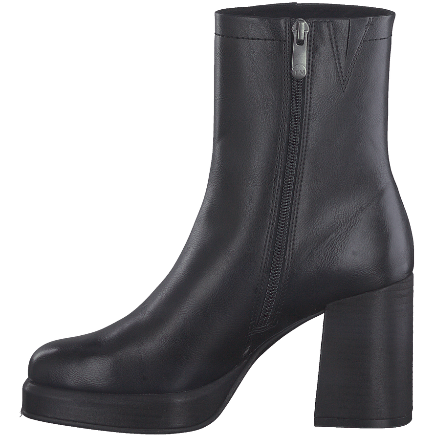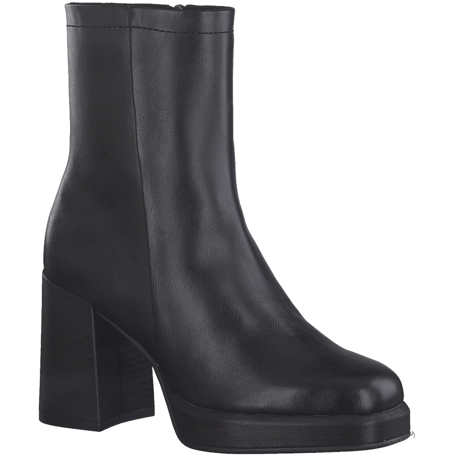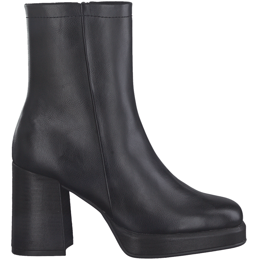 Γυναικεία μποτάκια της εταιρείας MARCO TOZZI σε μαύρο χρώμα. Η κατασκευή τους είναι από υψηλής ποιότητας γνήσιο δέρμα. Έχουν στενή εφαρμογή στο επάνω μέρος, φερμουάρ για μεγαλύτερη άνεση και χοντρό τακούνι για περισσότερη σταθερότητα. Συνδυάστε τα με ένα μακρύ πουκάμισο-φόρεμα και μία ζώνη για μία βραδινή εμφάνιση.