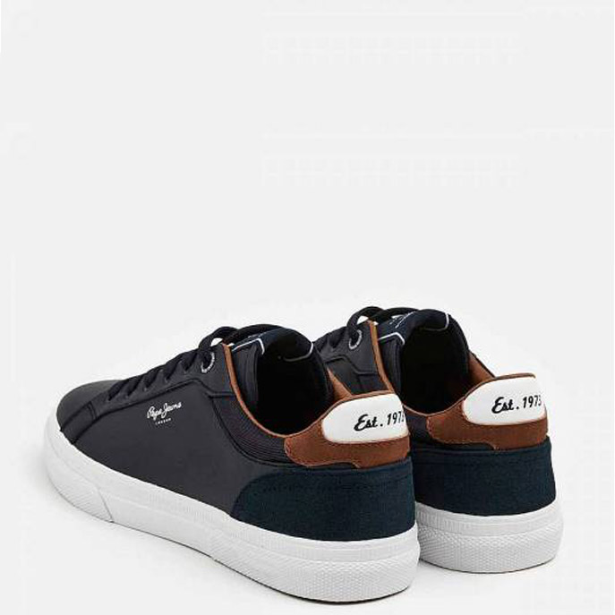 Ανδρικό sneaker παπούτσι από την νέα συλλογή του οίκου Pepe Jenas. Το διάσημο λογότυπο Pepe Jeans βρίσκεται στην πλαϊνή πλευρά του υποδήματος, καθώς και αποτυπωμένο στη γλώσσα και τη σόλα του παπουτσιού. Αποτελεί κλασσικό κομμάτι σε κάθε σύνολο καθώς το ανεπιτήδευτο στύλ και η διχρωμία του, το καθιστά ιδανικό για όλες σας τις εμφανίσεις.