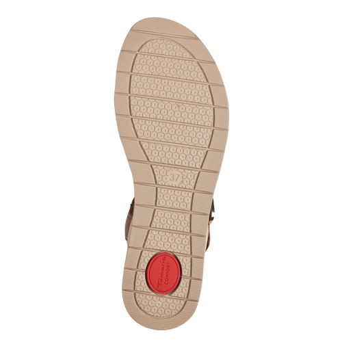 Γυναικείεα πέδιλα TAMARIS COMFORT, σε ταμπά χρώμα τα αποία είναι κατασκευασμένα από δέρμα εξαιρετικής ποιότητας. Επιπλεόν διαθέτει τεχνολογία COMFORT FIT/COMFORT FOOTBED που διασφαλίζει την άνεση και ο πάτος προσαρμόζεται στο πέλμα. Σταθερή και μοντέρνα σόλα για όλες τις ώρες της μέρας